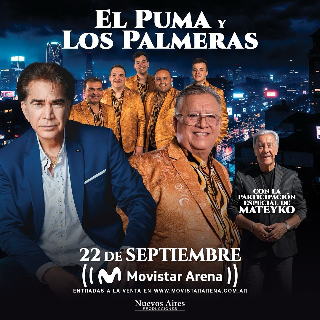 El esperado espectáculo “Una noche de oro”, protagonizado por Los Palmeras y José Luis “El Puma” Rodríguez, se llevará a cabo el próximo 22 de septiembre en el Movistar Arena con la participación estelar de Mateiko. Dos íconos de la música popular latinoamericana en un mismo escenario, promete ser una experiencia inolvidable cargada de emoción, ritmo y grandes clásicos.