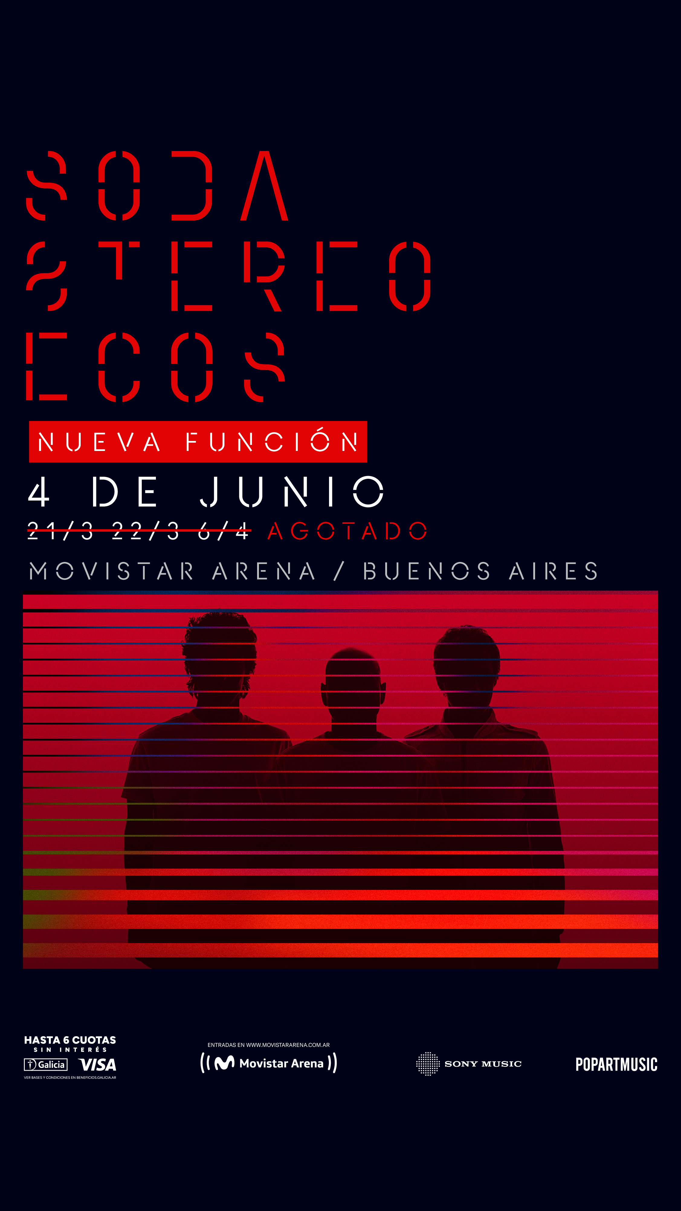 La vuelta más esperada se convirtió en un fenómeno imparable. Tras agotar en tiempo récord las funciones del 21, 22 de marzo y 6 de abril en el Movistar Arena, Soda Stereo suma una nueva fecha: 4 de junio.