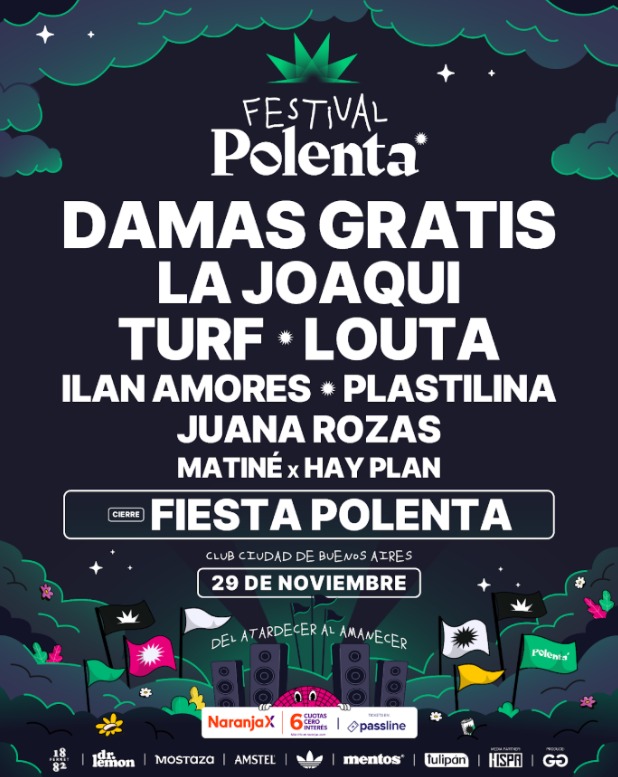 ¿Un “Fiestival”? Sí, ¡un Fiestival! El próximo 29 de noviembre se enciende la primera edición de Festival Polenta, una propuesta completamente nueva en las grillas artísticas de Argentina que va del atardecer al amanecer: desde las 18 hs y hasta las 5 de la mañana, el festival será un crossover de las joditas que tanto nos gustan: Damas Gratis, La Joaqui, Turf, LOUTA, Ilan Amores, Plastilina, Juana Rozas cortarán la cinta inaugural de este festi creado por Nacho Elizalde y La Polaca.