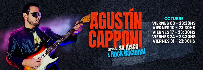AGUSTÍN CAPPONI llega al Paseo La Plaza. El cantautor rionegrino presentará los temas de Secreto, su álbum debut y versiones de clásicos del rock nacional en un ciclo que comprende los cinco viernes de octubre. Agustín actuará este viernes 10, 17, 24 y 31 de octubre a las 23:30h, en la Sala Cortázar del Paseo La Plaza, Av Corrientes 1660.