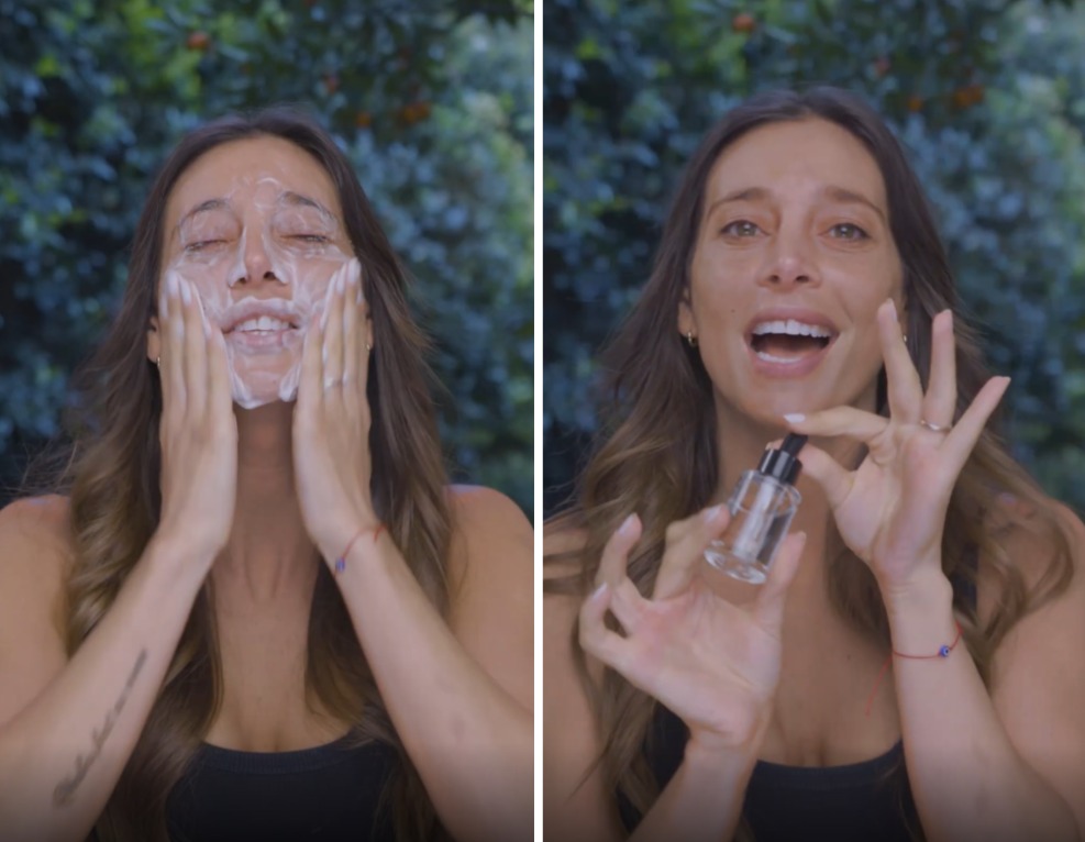 En su rutina, un paso infalible es el aceite de ricino para cejas y pestañas de Veganis, ya que le ayuda a nutrirlas y hacerlas crecer de manera natural. “ Estos dos productos son esenciales porque me cambiaron la vida. Después de usar el aceite para pestañas, me recuperaron tan bien que dejé de ponerme postizas”, explica la celebridad. Su toque final es el protector solar, el cual considera fundamental aún cuando el día está nublado. Todos los productos que Sol elige para su rutina de cuidado son veganos, cruelty free y livianos para la piel. |