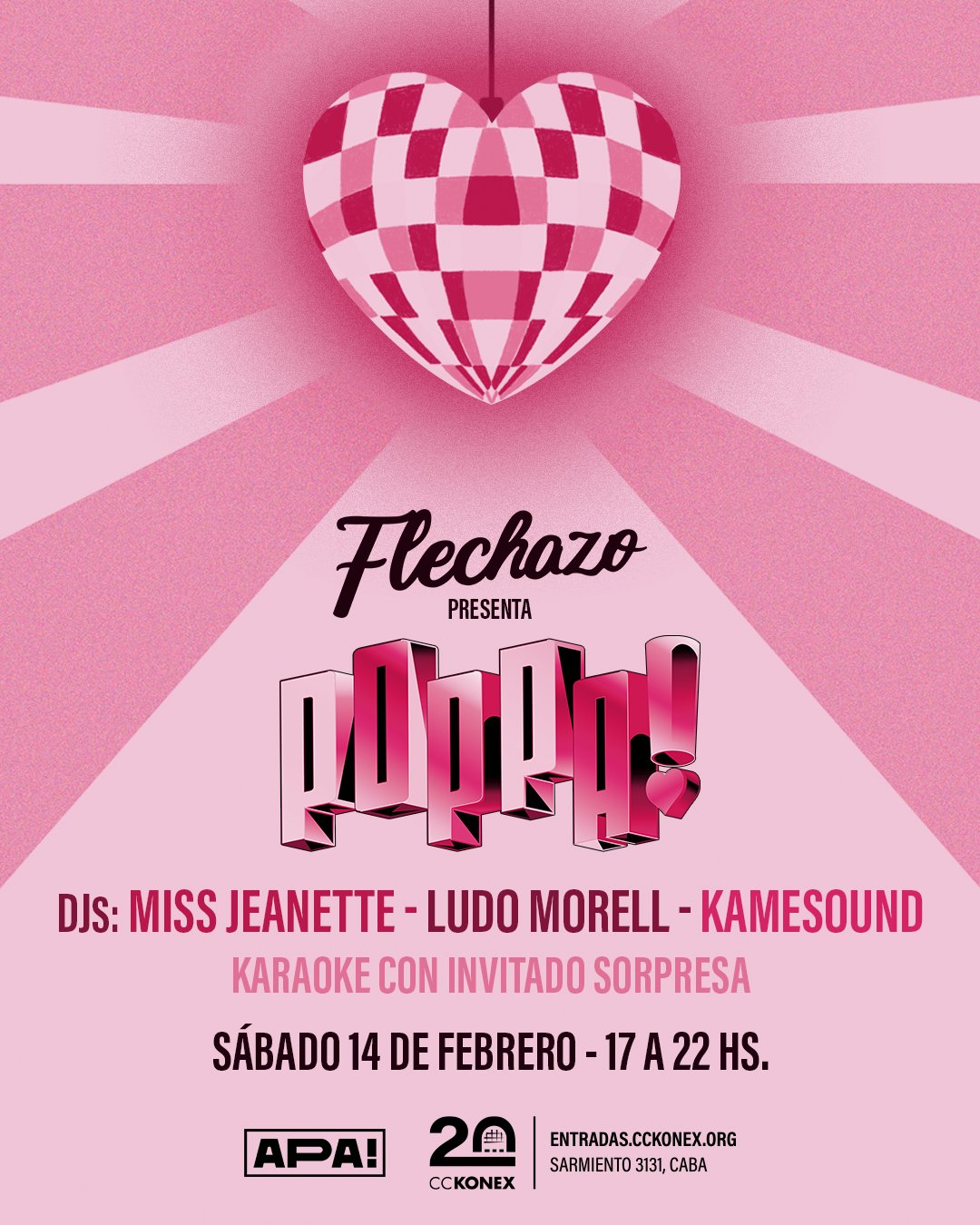 Este 14 de febrero celebramos la música pop, el baile, la amistad y el amor en todas sus formas. Vení a recibir el flechazo del pop con tu pareja, tus amigos, o solo, ¿por qué no?