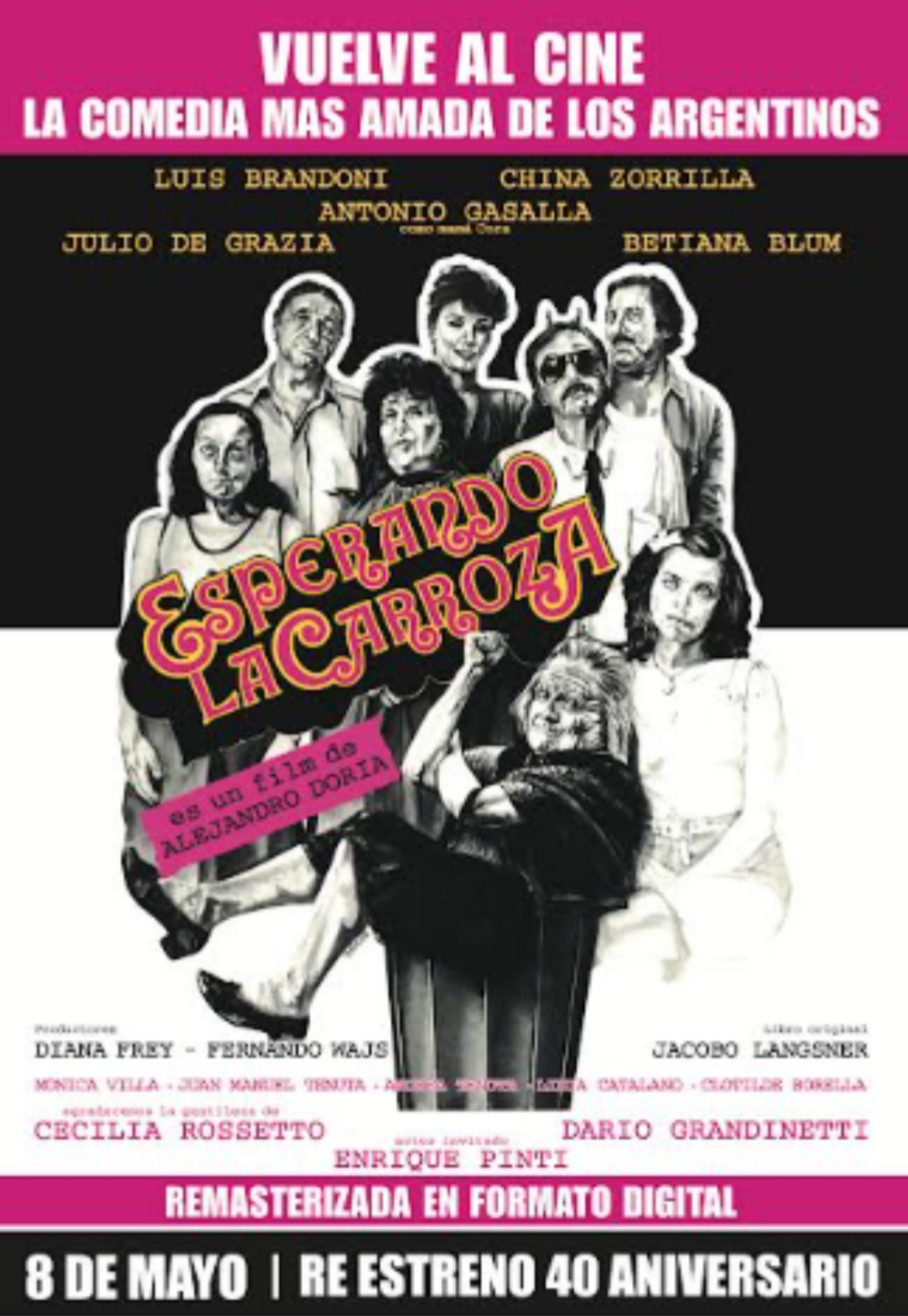 El homenaje comenzará el martes 6 de mayo a las 19 h en el Hall Alfredo Alcón del Teatro San Martín, con un encuentro abierto al público que contará con la participación de Luis Brandoni, Mónica Villa, Betiana Blum —parte del elenco original— y Diana Frey, productora del film. A las 21 h, en la Sala Manuel Antin del Centro Cultural San Martín, se proyectará la película #Esperandolacarroza en una función especial. 🎟️La entrada será libre y sin costo, y podrá retirarse el mismo día desde las 19 h en el hall del Teatro San Martín, por orden de llegada. Además, el jueves 8 de mayo, la película tendrá su reestreno en salas comerciales.