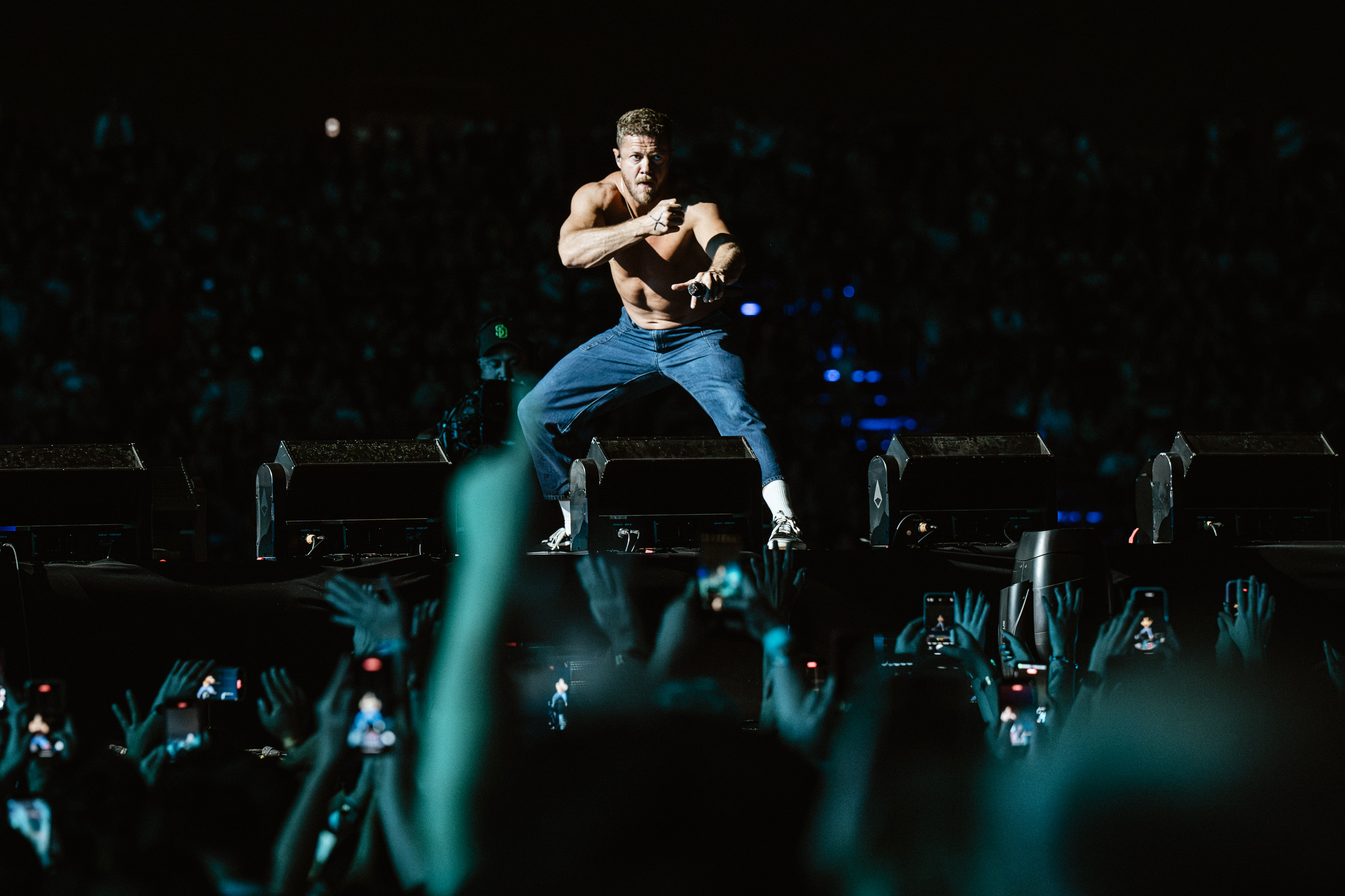 | La intensidad siguió con “Take Me to the Beach”, también de su último disco, y el remix de “Shots”, que sumaron elementos lúdicos a la experiencia: pelotas inflables surcando el cielo, ráfagas de humo, luces dinámicas y visuales perfectamente sincronizadas acompañaron la música sin opacarla. “Whatever It Takes” cerró este primer bloque con una entrega absoluta de la banda y un público ya rendido a sus pies.