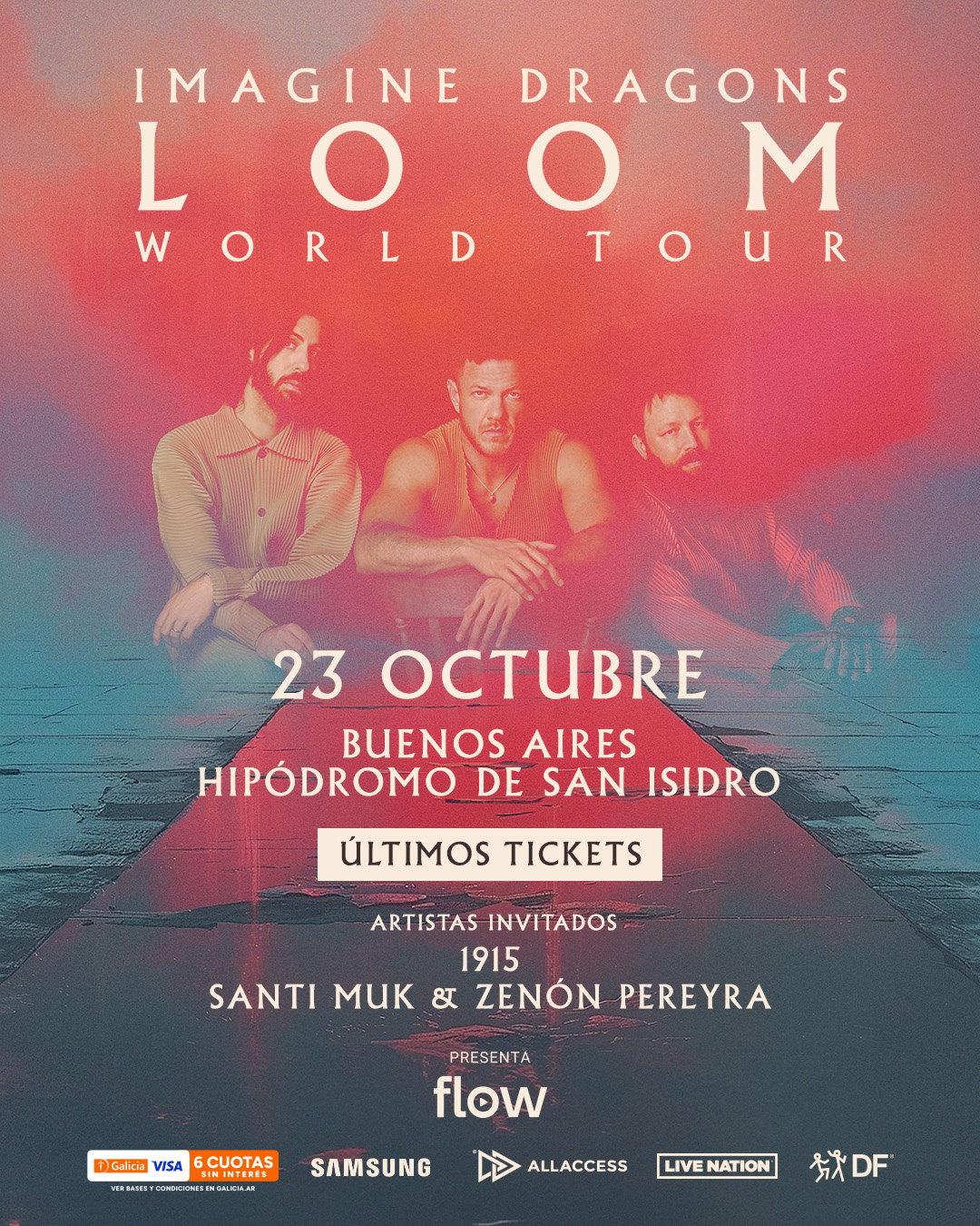 | Imagine Dragons regresa a Argentina con su esperada presentación en el Hipódromo de San Isidro este jueves 23 de octubre, en el marco de su LOOM World Tour, la gira mundial con la que la banda liderada por Dan Reynolds presenta su más reciente álbum LOOM (2024).