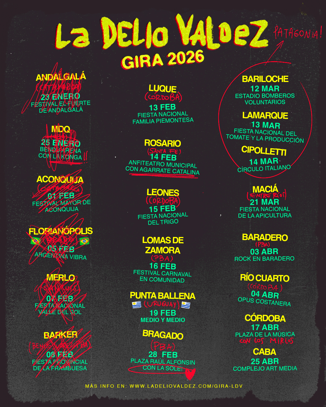 Buenos Aires, enero 2026 - La orquesta continúa girando con su nuevo material, y comenzó el año con una presentación junto a La Konga en Mar del Plata, en el ya clásico show del verano en La Feliz. Además, fue parte del emotivo homenaje a los 30 años de carrera de Soledad Pastorutti en el Festival Nacional de Folklore de Cosquín, en Córdoba. Durante este 2026, La Delio Valdez sigue con su gira El Desvelo, que en marzo la llevará a Cipolletti y Bariloche, y en abril protagonizará un gran encuentro con Los Mirlos el 17 de abril en C, en La Plaza de La Música, Córdoba. A esto se suman numerosas presentaciones en festivales de Argentina, Brasil y Uruguay. (Ver todas las fechas aquí) |