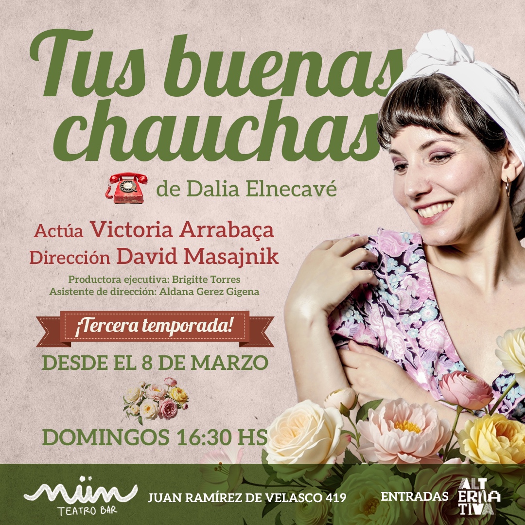 La tercera temporada de Tus buenas chauchas desembarca en la cartelera porteña el domingo 8 de marzo a las 16:30 hs en el Teatro Nün (Juan Ramírez de Velasco 419, CABA). La obra, escrita por Dalia Elnecavé, está protagonizada por Victoria Arrabaça y cuenta con dirección y puesta en escena de David Masajnik, consolidando un recorrido que comenzó en 2024 incluyendo reposiciones y presentaciones en festivales y giras. Las entradas se pueden adquirir por Alternativa Teatral.
