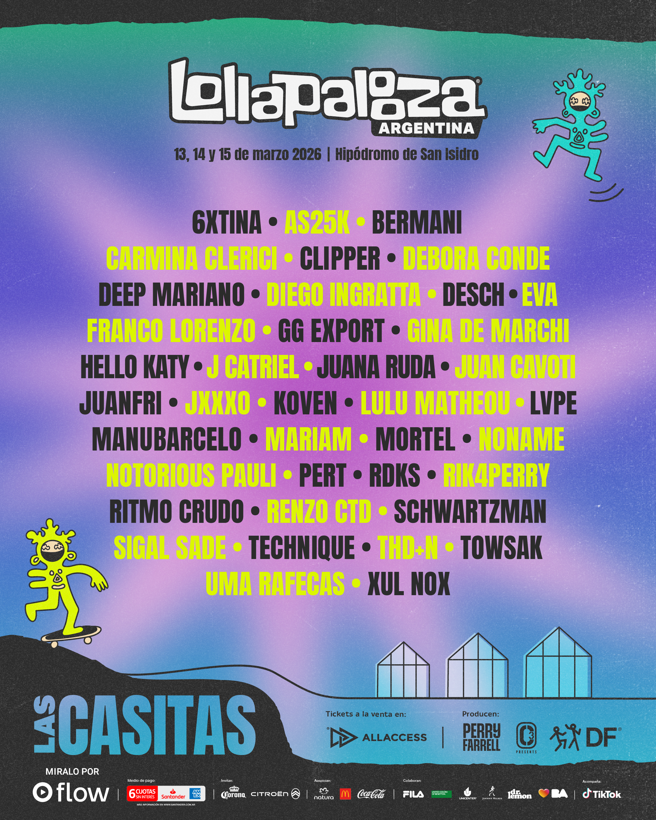 Así, entre pistas íntimas, experiencias inmersivas y grandes escenarios, la electrónica atraviesa toda la experiencia de Lollapalooza. Desde referentes internacionales como Skrillex, Peggy Gou, Kygo, Ben Böhmer y Brutalismus 3000, hasta nuevos sonidos de la escena local como Six Sex y Marttein, el festival celebra la diversidad de una escena que no deja de crecer. |
