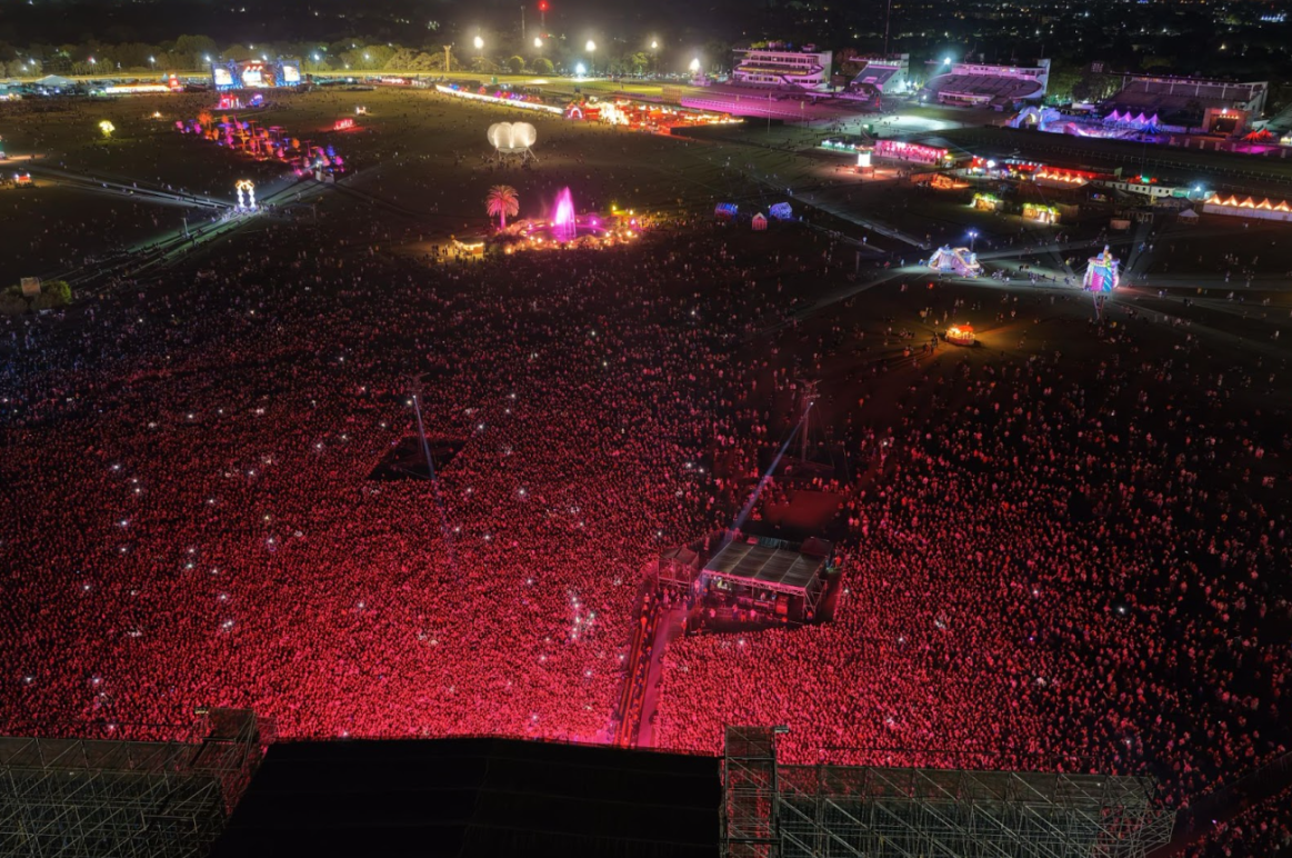 En paralelo, otros dos escenarios ofrecían postales muy distintas del pulso global del festival. En el Samsung Stage, el fenómeno del K-pop RIIZE desplegó un show de coreografías milimétricas y pop de alto impacto que hizo vibrar a su fanbase con hits como “Get A Guitar” y “Love 119”. Mientras tanto, el Perry’s Stage recibía al dúo berlinés Brutalismus 3000 , que transformó el espacio en un ritual electrónico de alto voltaje con su mezcla feroz de techno, gabber y estética rave, reafirmando por qué se han convertido en uno de los nombres más incendiarios de la escena club europea.