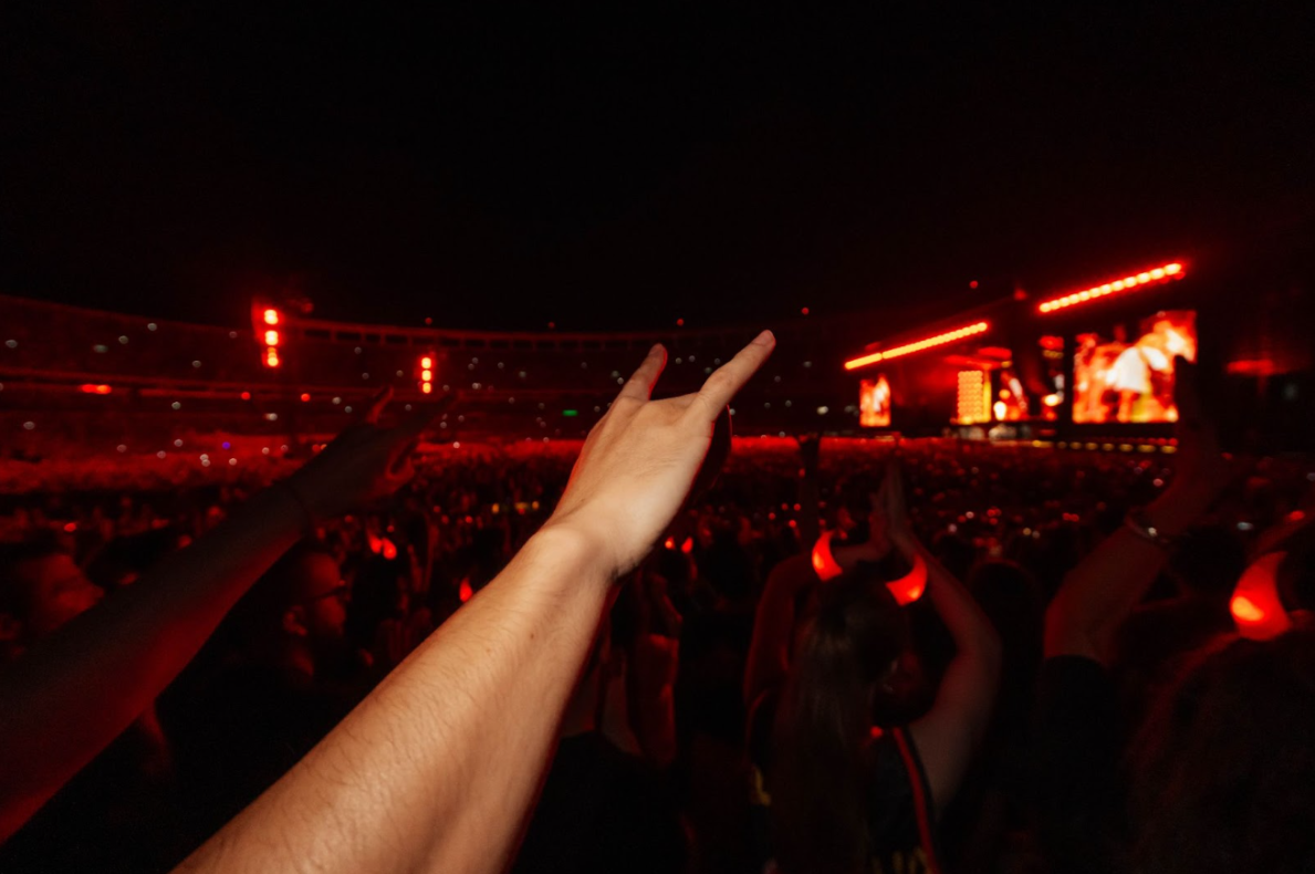 Pocos minutos pasadas las 21, los cuernos que adornaban las cabezas de los presentes prendieron luz transformando a la multitud dentro del estadio en un océano rojo. Fue entonces cuando Angus Young irrumpió en el escenario mientras un River repleto lo ovacionaba, y la inconfundible voz de Brian Johnson desataba la euforia de los fanáticos al ritmo de “If You Want Blood (You’ve Got It)”. Con la contundencia que los define, “Back in Black” siguió en el inicio de la última noche. A partir de ahí, el show continuó a paso firme con “Demon Fire” y “Shot Down in Flames”, que sostuvieron la intensidad de un arranque demoledor. El eterno riff de “Thunderstruck” marcó uno de los primeros picos de la noche, recorriendo cada rincón del estadio. “Have a Drink on Me” sacudió River antes de que la campana descendiera y bajara el ritmo de la atmósfera para darle lugar al ritual que es “Hells Bells”.