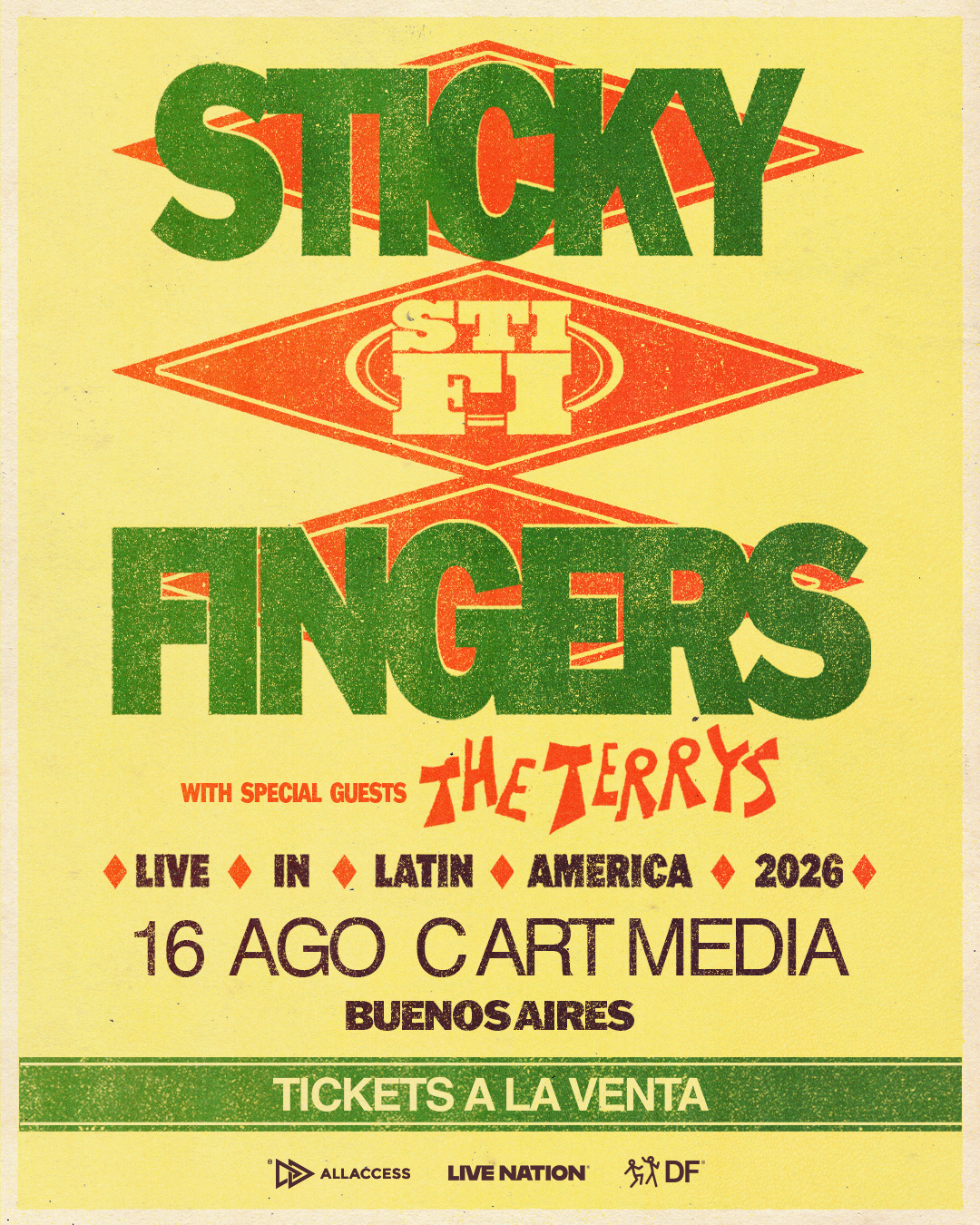Buenos aires, 22 de abril de 2026. Al fin llega el anuncio con el que soñaron durante mucho tiempo los fans argentinos de Sticky Fingers: la banda australiana anunció que se presentará por primera vez en la Argentina el 16 de agosto en el Complejo Art Media, con The Terrys como invitados especiales y producción de DF Entertainment. Los tickets podrán adquirirse con cualquier medio de pago a partir del 24 de abril a las 10:00 horas, únicamente a través de All Access. |